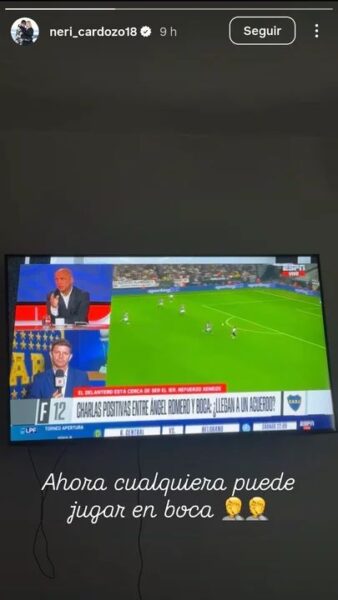 Según pudo averiguar la Agencia Noticias Argentinas, el centrocampista ganador de la Copa Libertadores 2007 con el elenco azul y oro publicó a través de sus historias de Instagram una imagen de la televisión, sintonizando un canal deportivo en el que hablaban del posible refuerzo, acompañada de la contundente frase: “Ahora cualquiera puede jugar en Boca”.
