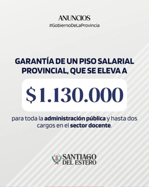 El Gobierno de la Provincia de Santiago del Estero informó un nuevo acuerdo salarial destinado a los trabajadores de la Administración Pública, luego de las reuniones con la Mesa de Diálogo y Trabajo, tanto con el sector docente como los que componen la representación de la administración pública, se acordaron las siguientes pautas salariales: