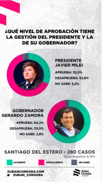 El gobernador de Santiago del Estero, Gerardo Zamora, se ubica entre los tres mandatarios provinciales con mayor aprobación a nivel nacional, según el último informe de la consultora Zuban Córdoba. Con un 64,2% de imagen positiva, Zamora destaca por su gestión y liderazgo en la provincia, consolidándose como uno de los referentes de mayor aceptación popular en el país.