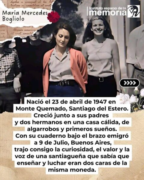 En el marco de los 50 años del golpe de Estado en Argentina, se recuerda a María Mercedes Bogliolo, docente y militante política oriunda de Monte Quemado, en el departamento Copo.