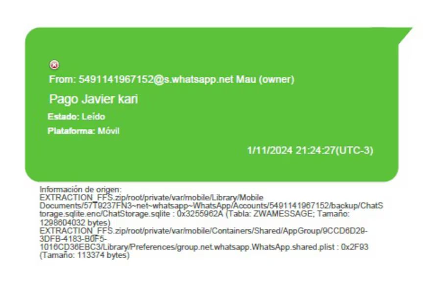 El mismo análisis mostraba que Davis también había sido quien envió dos de 507.000 dólares minutos antes de la reunión con Milei el 30 de enero de 2025. Ese dinero llegó a Novelli y Terrones. El intermediario se llama Orlando Mellino y es un jubilado con domicilio en una plaza en Tigre. Ese fue el día que Davis y Milei sacaron una foto que el Presidente tuiteó comentando que Davis lo asesoraba, tal como preveía el texto del presunto contrato hallado en el las notas del celular de Novelli. Ese tuit es el que estaba tarifado en 1,5 millones de dólares.