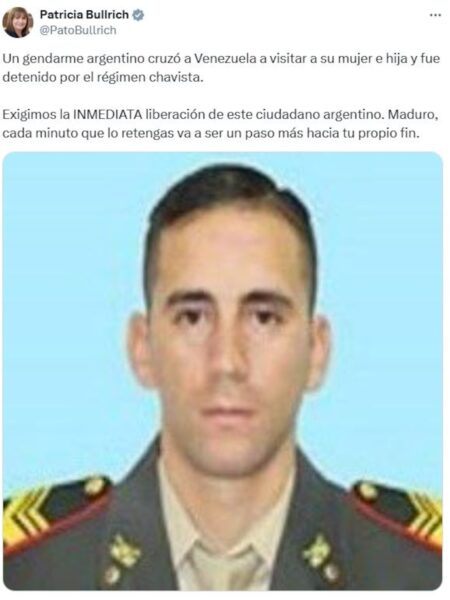 El gobierno de Javier Milei exigió la liberación del gendarme argentino detenido por el régimen de Nicolás Maduro. “La Argentina no tolerará actos de esta naturaleza contra sus ciudadanos”, detallaron en un comunicado difundido por la Cancillería Argentina y el Ministerio de Seguridad.