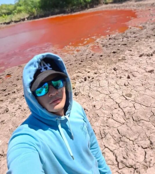 El extraño fenómeno sucedió en la “Finca Emanuel” de Raúl Maldonado, quien tiene un campo de alrededor de 50 hectáreas para la cría de animales vacunos. En una parte del predio tienen una gran represa que acopian agua de las lluvias para los animales. El último domingo al concurrir al lugar se encontraron con la impactante imagen: la laguna estaba toda roja, como si fuese de sangre, comentó Nahuel Maldonado.