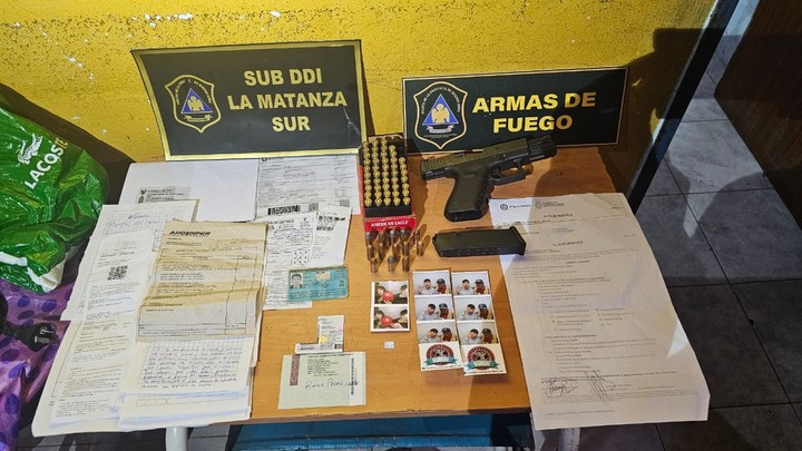 En este lugar se secuestró documentación a nombre de Valverde Victoriano y otros parientes, y una pistola Glock con municiones en un cajón colocado debajo de una cama.